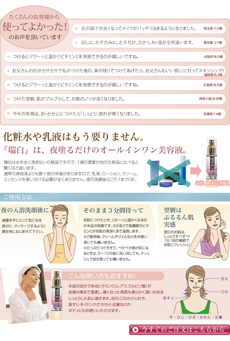 ・つけた翌朝、肌がプルプルして、化粧のノリが良くなりました。
